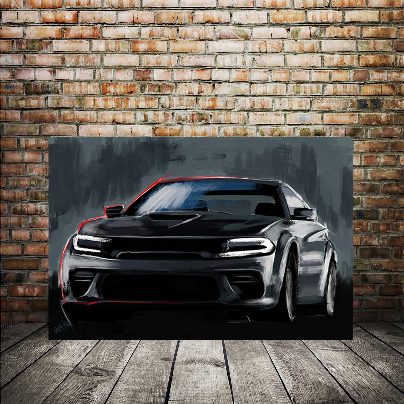 Black Automotive Canvas Print Art Print Charger Wide Body Etsy Canada